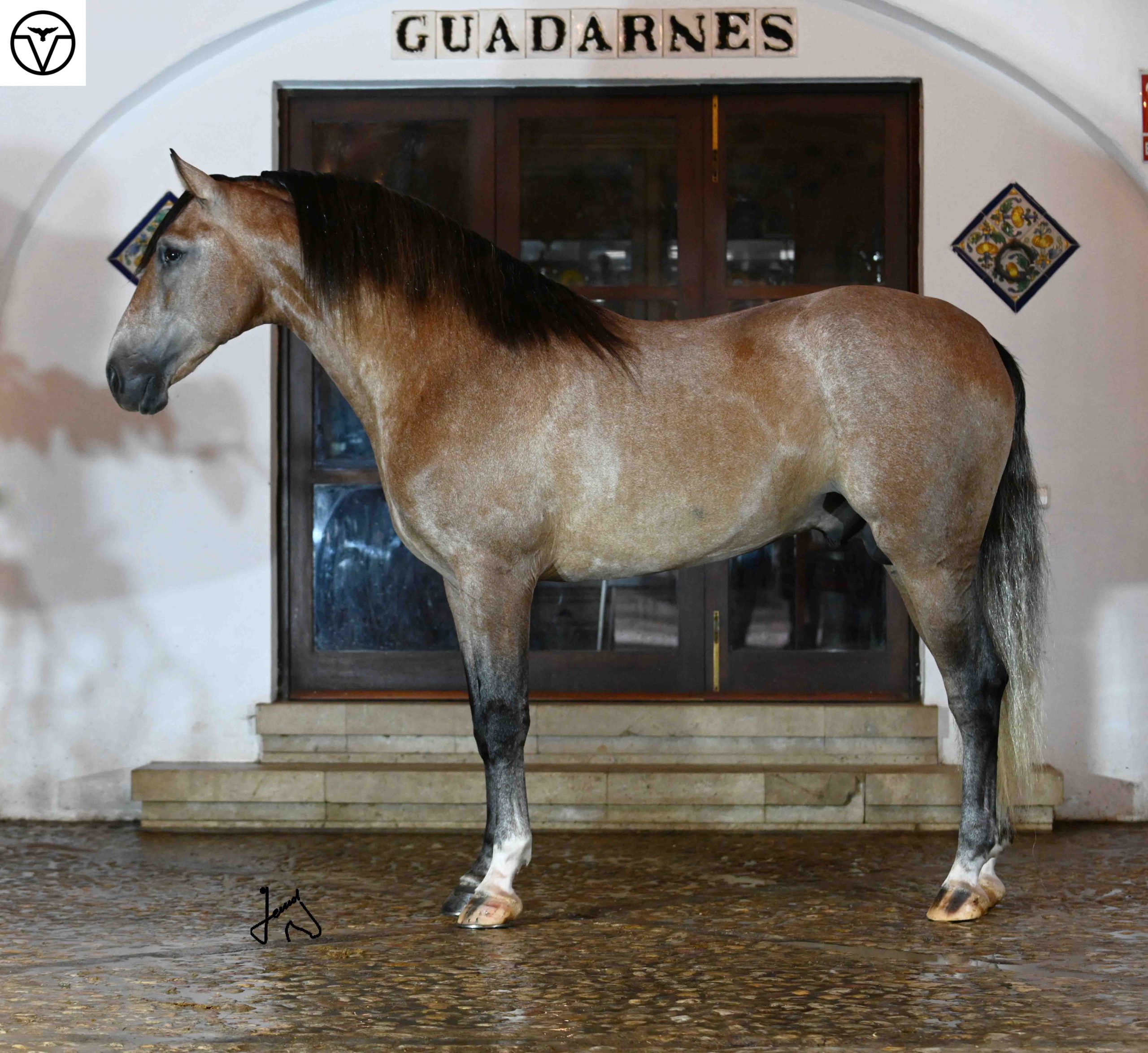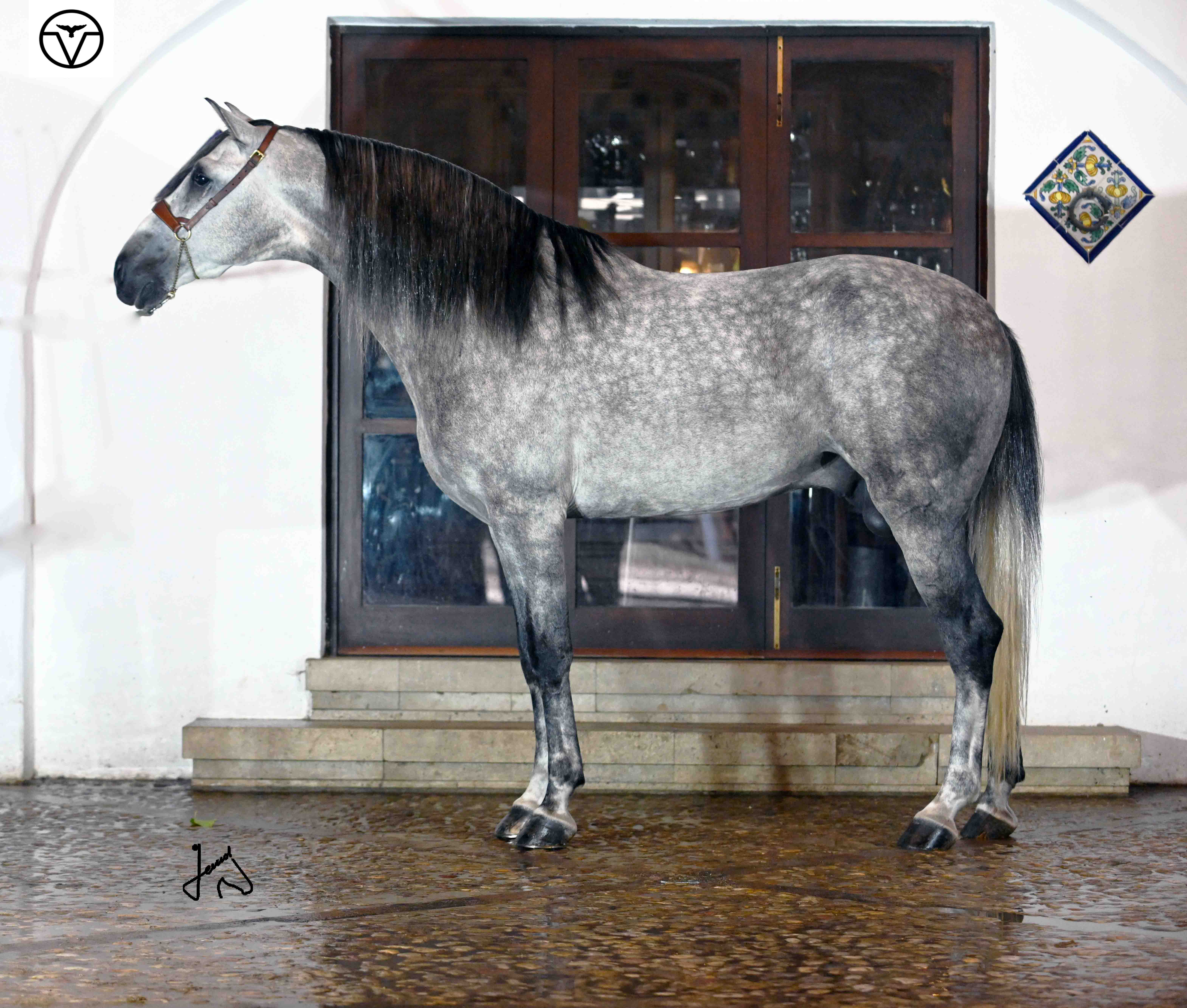 Es un ejemplar que destaca por su físico deportivo, gran fortaleza y una morfología proporcionada. Sus movimientos son excepcionales: amplios, expresivos y llenos de elasticidad, lo que le confiere una proyección sobresaliente tanto en la doma como en la reproducción.